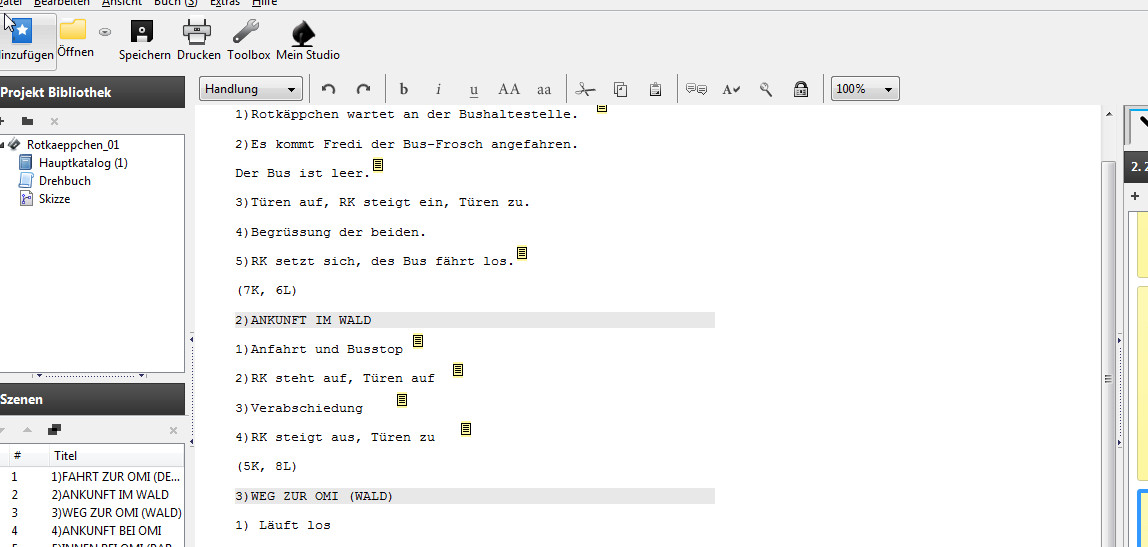 Bin ich damit einigermassen fertig, geht's ans Drehbuch.