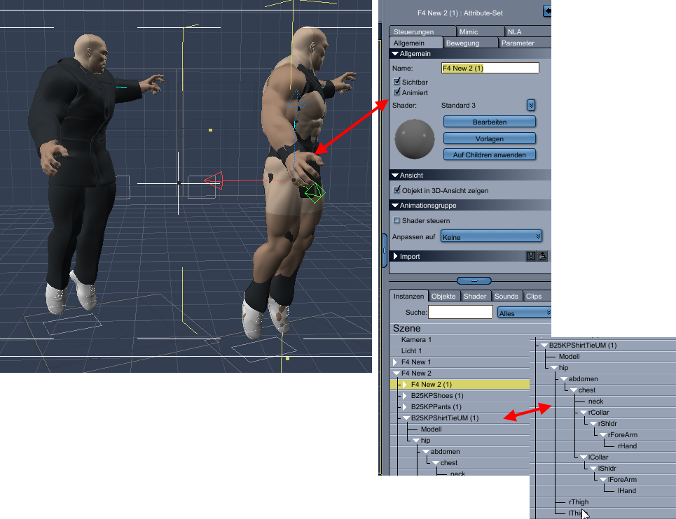 Figur 1 (bekleidet) ist wieder importiert, Figur 2 aus "Eigene Objekte"