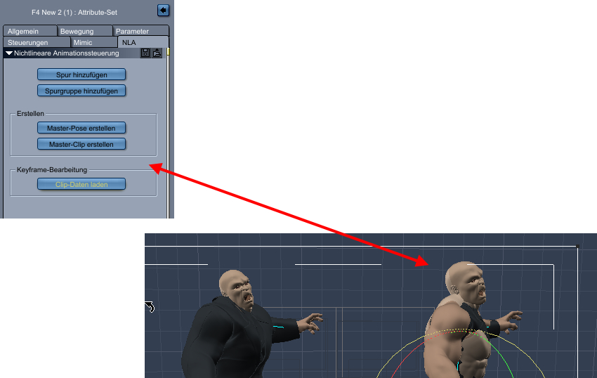 Posen kann man sich aber im NLA speichern auch angeben was alles mit in die Pose einbezogen werden soll . Das kann man sich unter Clips speichern und auch im NLA wieder auf die entsprechende Figur laden .