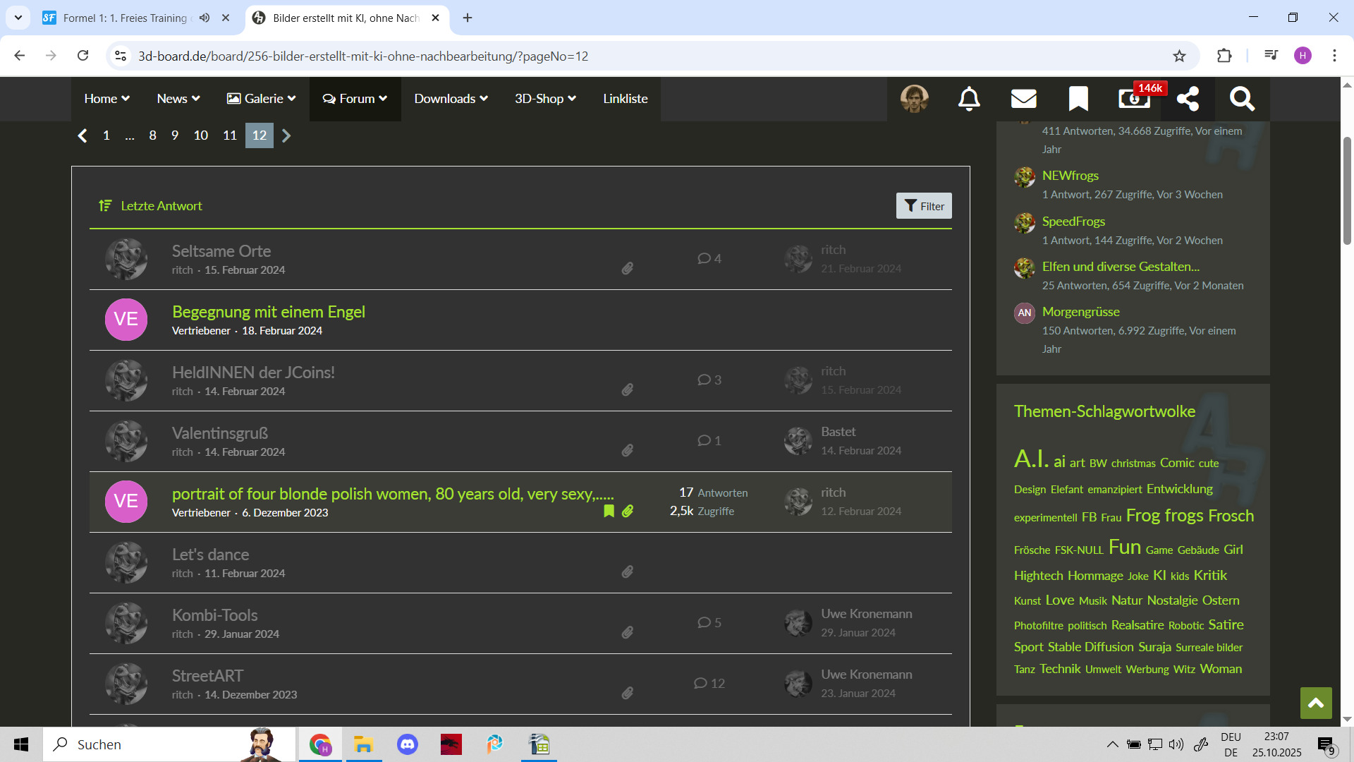Mit dem "Vertriebenen" warst du doch gar nicht gemeint! Ich habe vergessen, wie der sich nannte.... ist weggegangen, weil sich so viele über seine Bilder beschwert hatten.... ich meine der hatte ein Armband gemacht.... Hat sich dann…