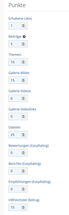 Manche Funktionen sind von einer bestimmten Anzahl an Aktivitätspunkten abhängig, wie z.B. die Zugehörigkeit zu bestimmten Benutzergruppen und darauf basierend, z.B. die Zugriffsrechte im Downloadbereich oder die Höhe der Beschränkungen in der Galerie.