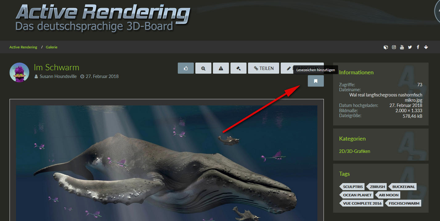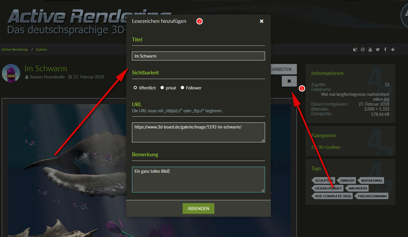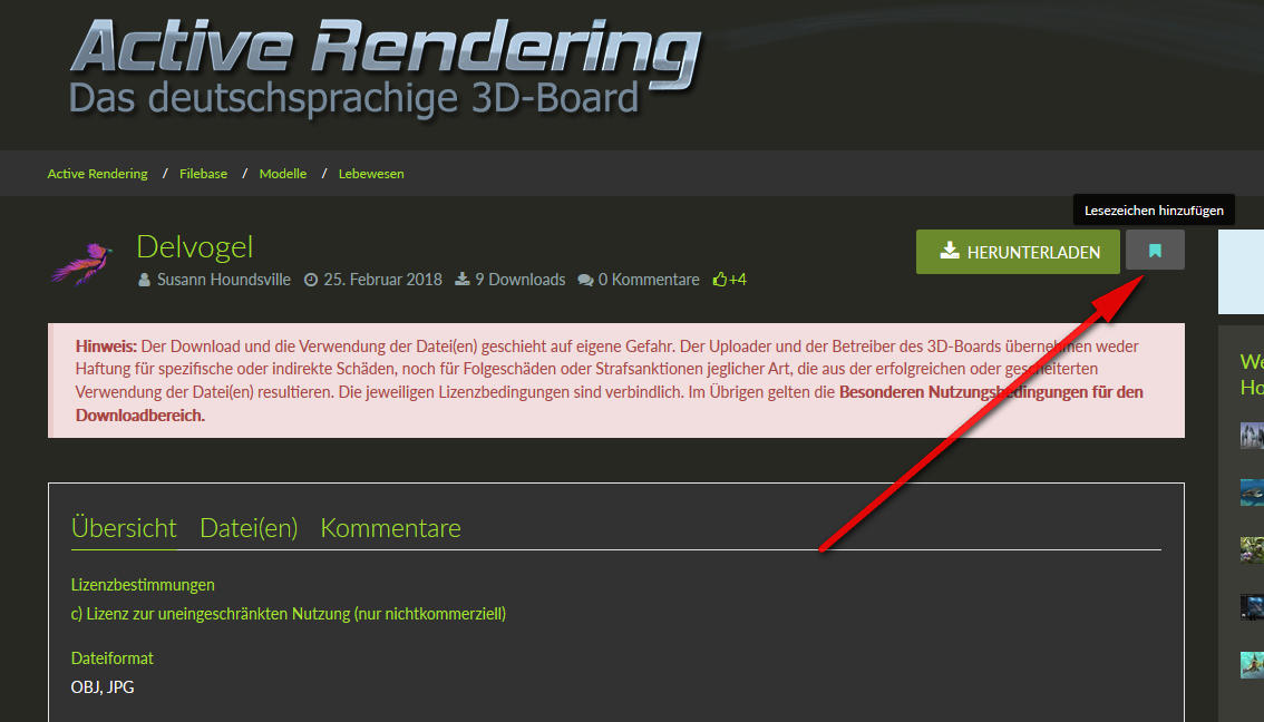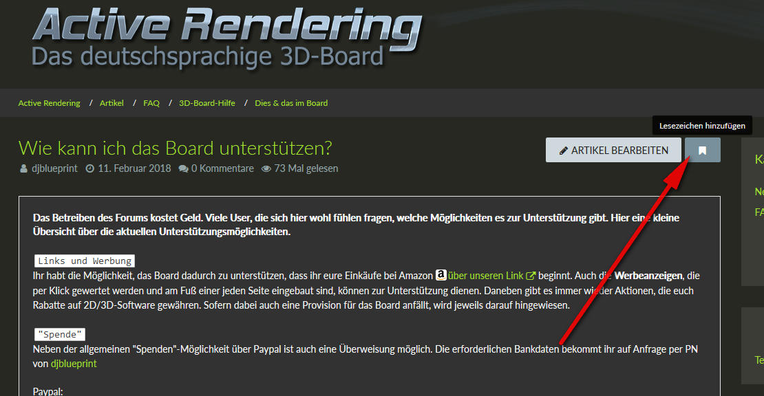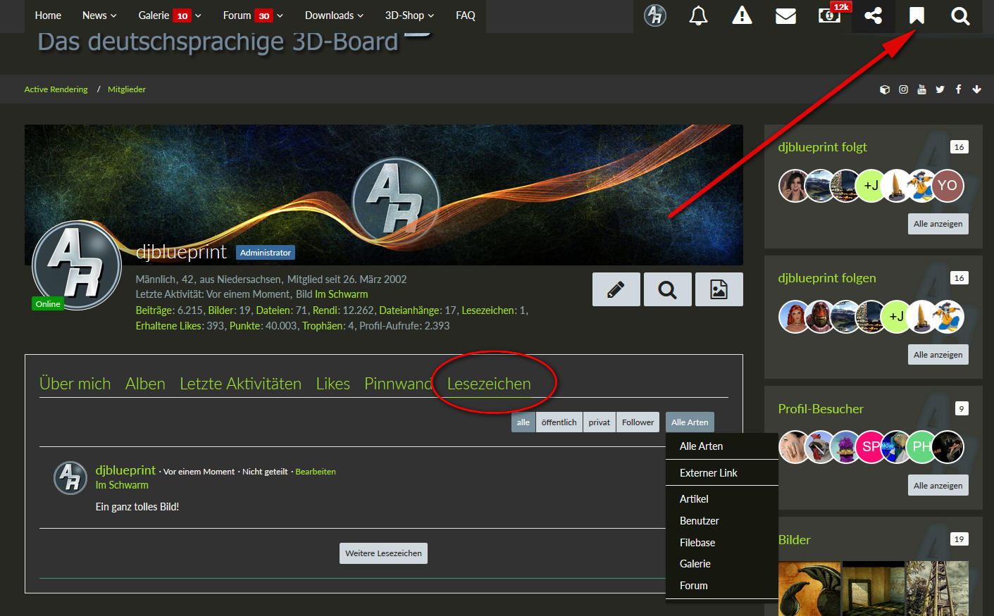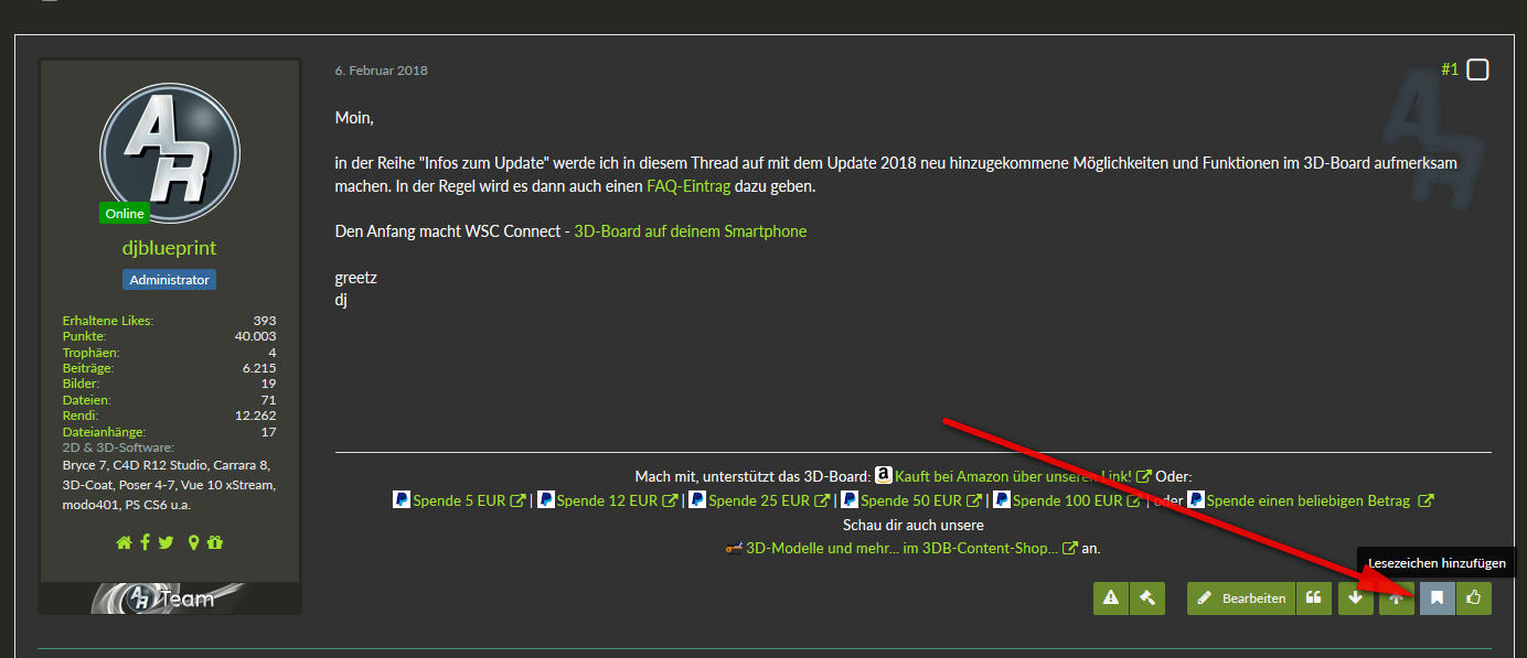 Zusätzlich könnt ihr Lesezeichen mit externen Links manuell erstellen. Das ist nützlich, wenn ihr euch hier im Forum z.B. zum Thema DAZ-Studio eine persönliche Linksammlung aus Beiträgen und weiteren Links aufbauen wollt.